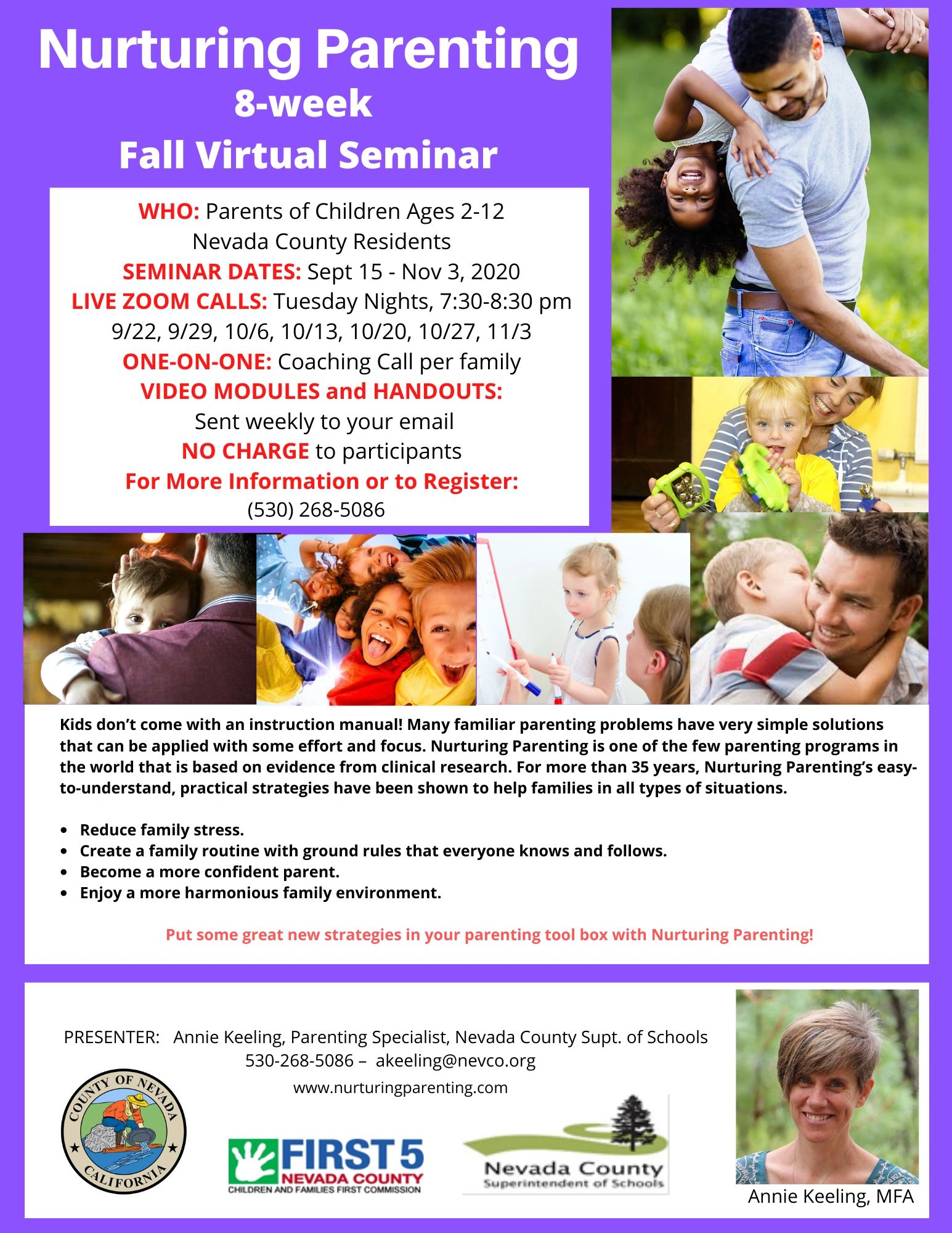 The nurturing parenting program is a free course offered to parents in the san bernardino count…y region with a child under the age of 5.